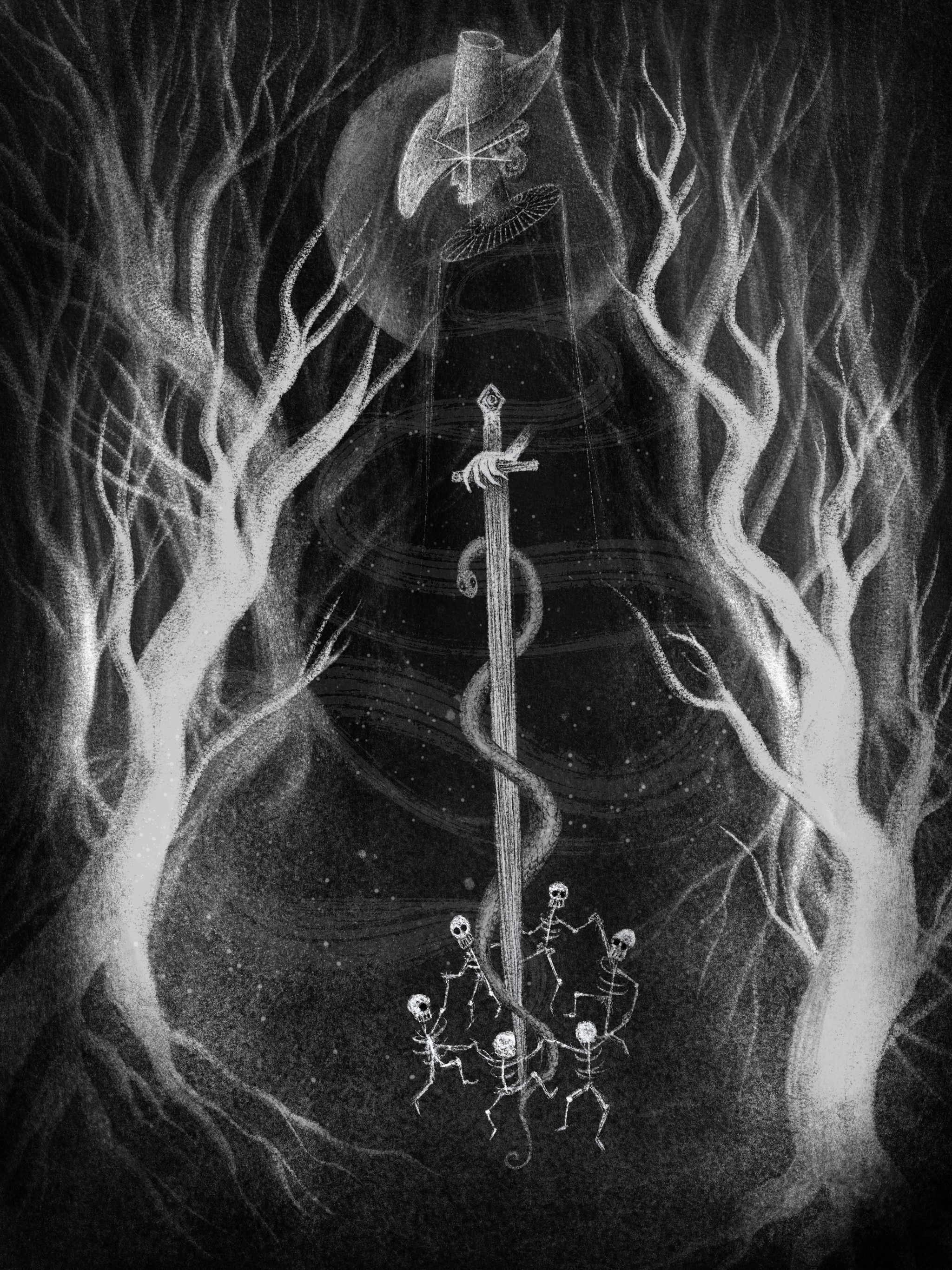And that’s it! I’ll leave you with this illustration of this sinister figure and the dancing dead, and will try to do an Oddments, Volume II, in a month or two. Thanks for following along!