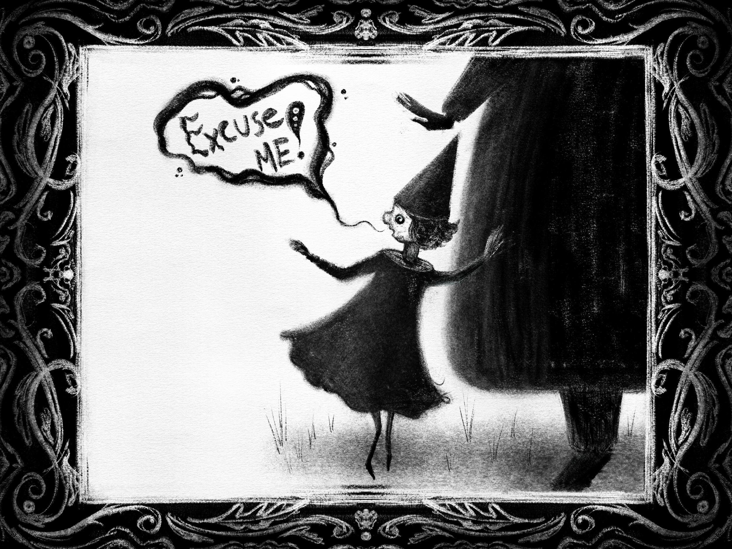I’ve been practicing my character drawings of late, so here’s a wee comic for this month’s Oddments. I don’t think it’s particularly good, but it was fun to make. 🐛