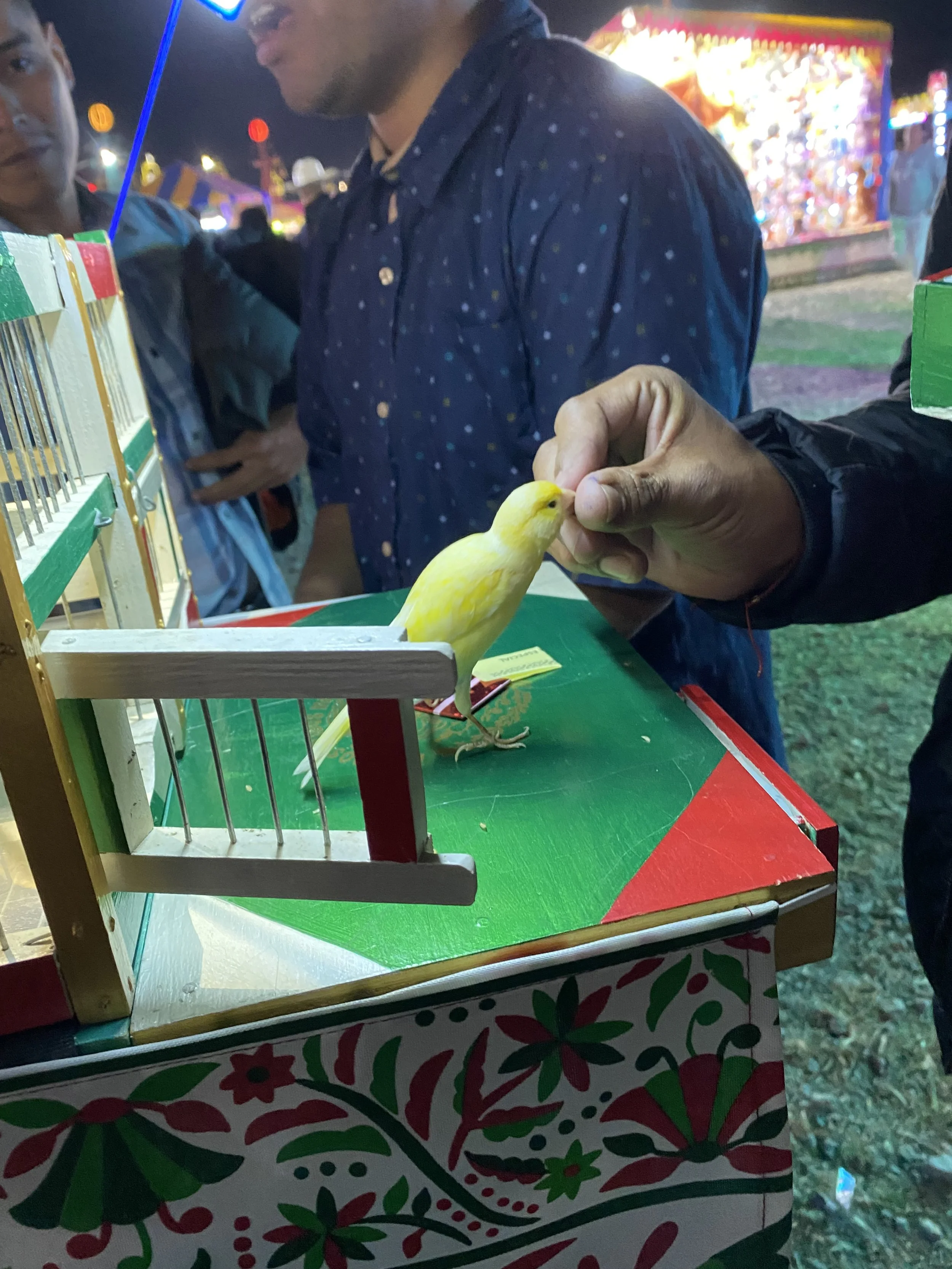 Getting your fortune told by a bird: In Mexico, there’s a tradition where a bird, preferably a canary, will tell you your fortune. It works like this: the bird picks little envelopes of colored foil out of a drawer filled with many hundreds of such envelopes. Inside the envelopes are snippets of paper telling one’s fortune. The snippets of paper I got were fun because they were all very dramatic and pot-stirring. Things like “You’re not sick, someone is cursing you” (I have been sick recently, so cursers, stawp), and “Someone in your family is jealous of you. CUT THEM OUT.” Would a canary lie to me?