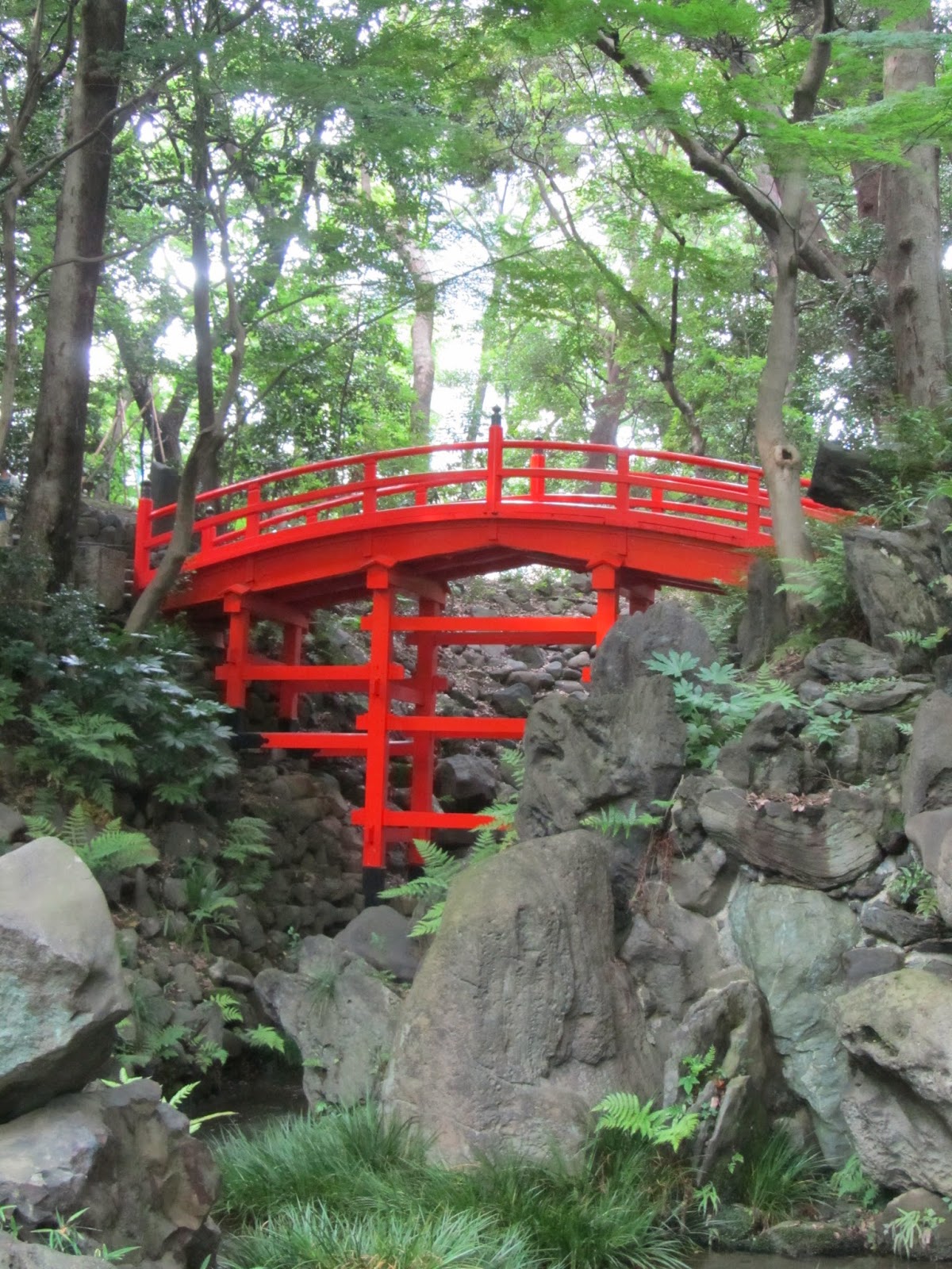 | Vermilion-lacquered bridge at the Koishikawa Korakuen Gardens. |